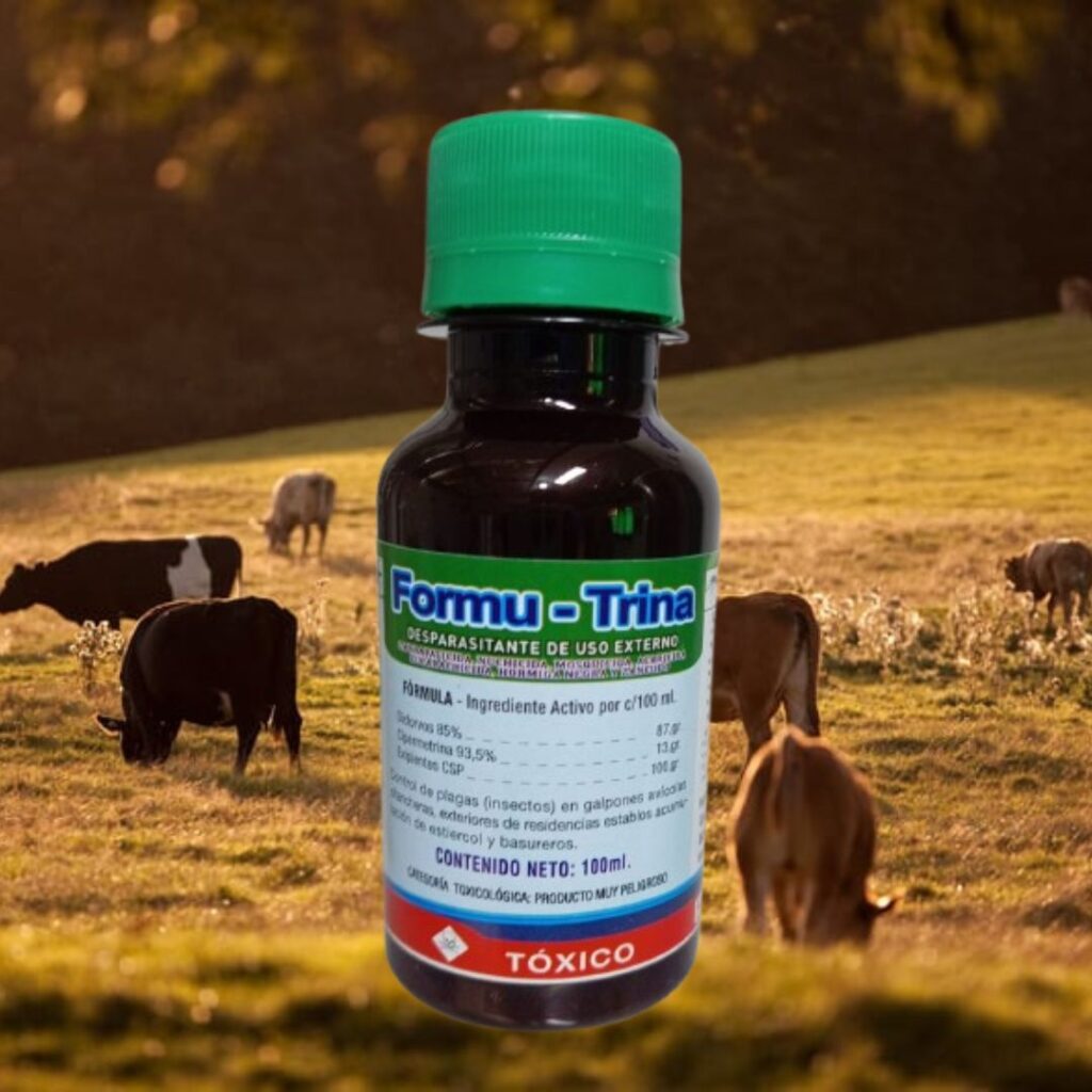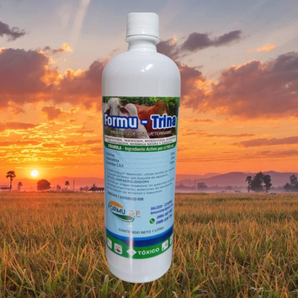 Formu-Trina en su presentación de 1 litro es la solución profesional para el control de plagas en grandes áreas. Ideal para uso veterinario intensivo en granjas, hatos, galpones y zonas rurales con alta carga parasitaria.